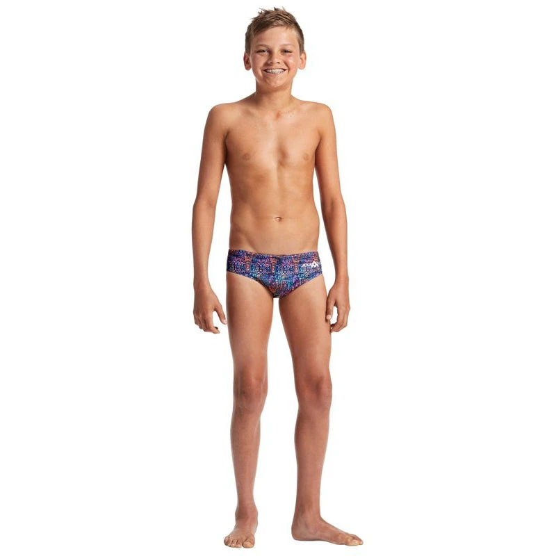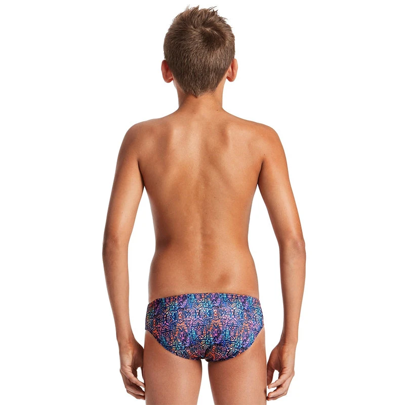 Love grunge but like a splash of colour too? You are going to fall head over swim fins for the AMANZI Iron Duke Briefs! This bold iron and resin style print features jet black geometrics overlaid on vibrant shades of ruby, tangerine, shamrock, violet, and emerald.