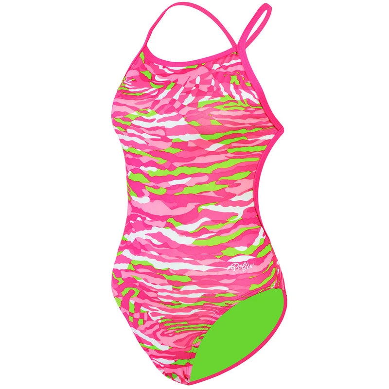 Created just for the girls who want minimal coverage and fashionable prints, Bellas practice suits are made with long-lasting and ultra comfortable lasting Poly blend fabric. Their smooth fit allows for full range of motion while training, and the super thin straps and open back help minimize tan lines during those long outdoor practices.