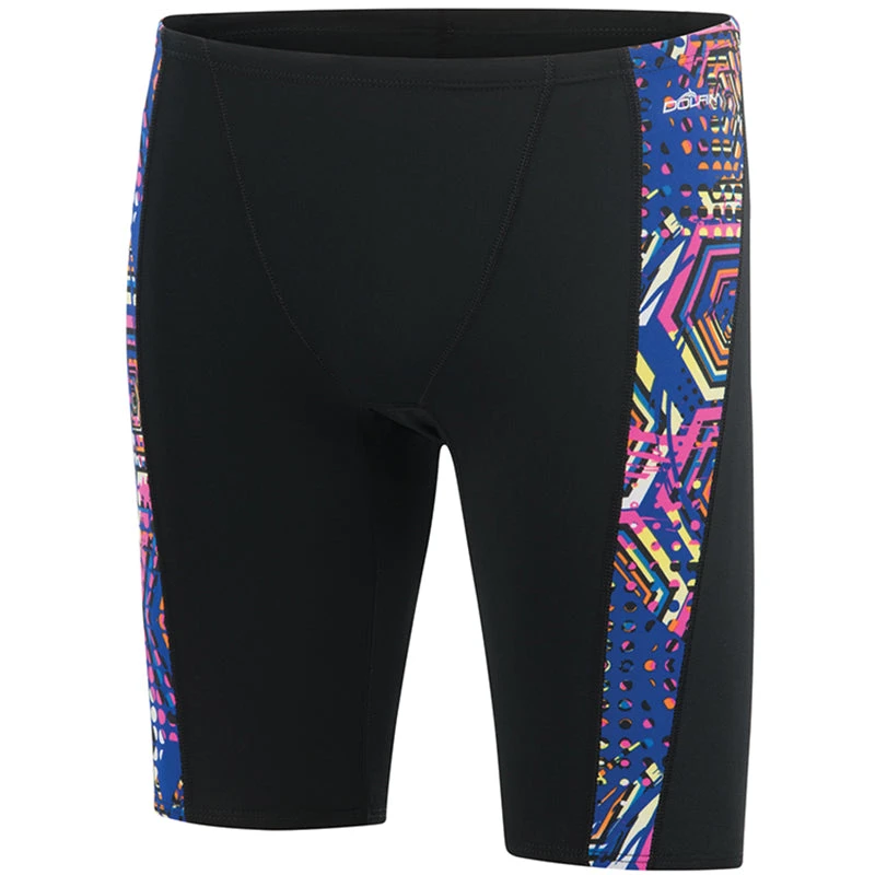 Swim in style in our athlete-approved Spliced Jammer with trendsetting multi Royal Hive print along sides. Our ultra-durable RELIANCE 100% Polyester fabrication won’t let you down!