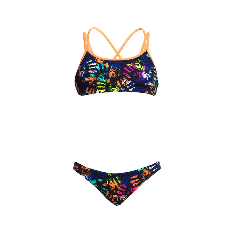 A double strap crossover back that provides added comfort and support for hours in the pool. Pairs back with the new skinny brief which provides firm rear coverage with drawcord.
