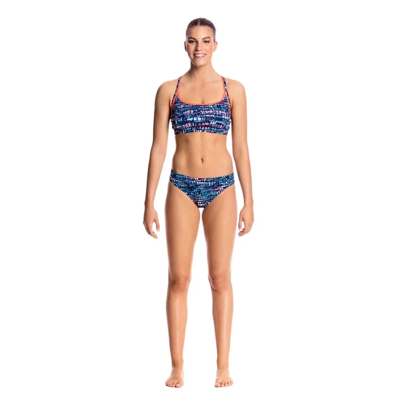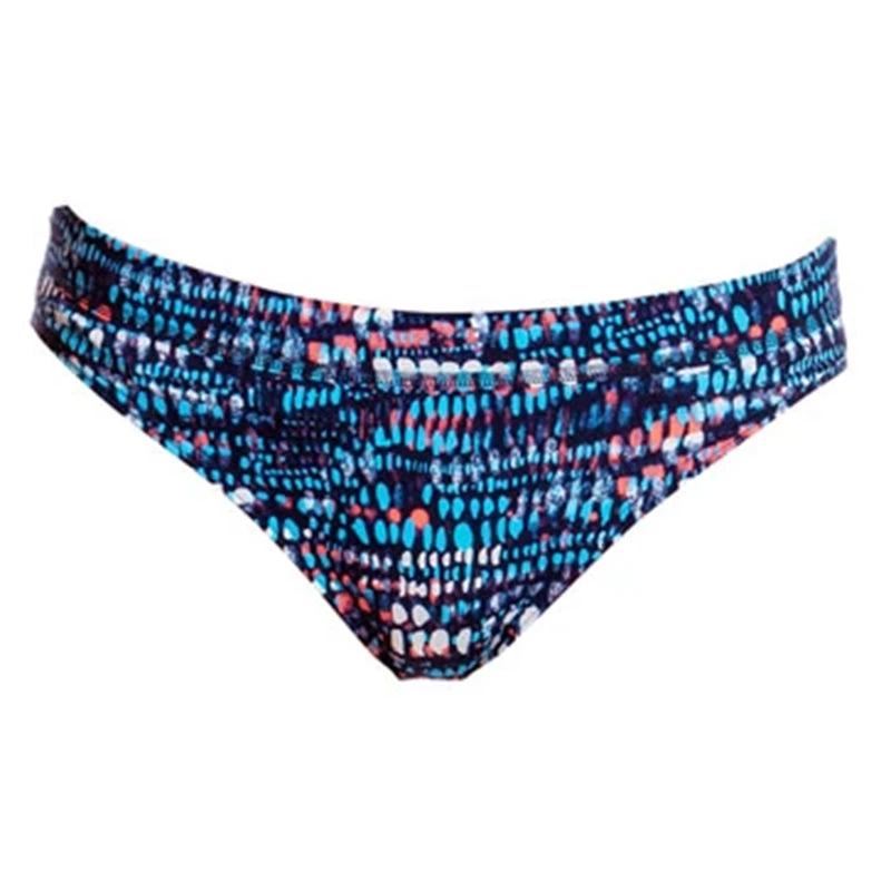 Hipster sports brief with drawcord and flat elastic waistband. Moderate leg rise and rear coverage. Sold as separates and available in sizes 8 – 14.