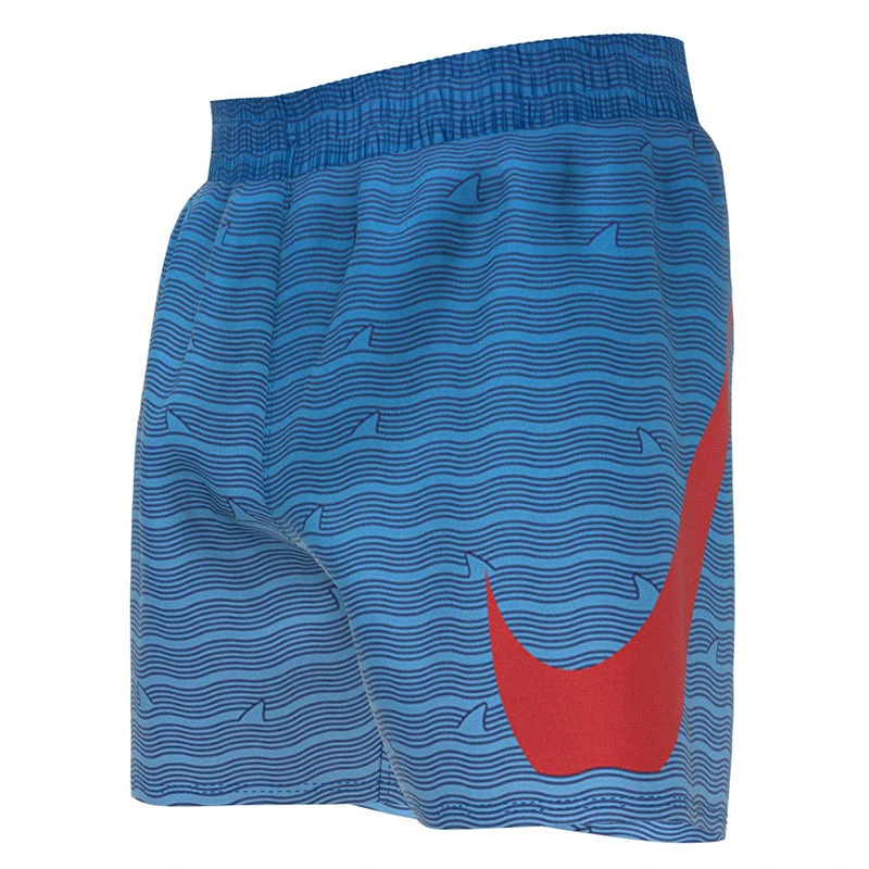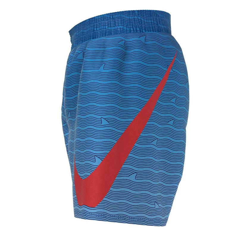 A bold look for the beach or pool, the Boys’ Nike Swim Shark Stripe Breaker 4″ Volley Short is as functional as it is fashionable. These colorful boys’ swim trunks are crafted with a stretch waistband and internal drawcord for adjustable comfort and a built-in mesh brief for a secure and supportive fit. A hook-and-loop welt pocket at the back offers hands-free storage space with a mesh pocket bag for drainage. The large embroidered swoosh adds to the modern sporty appeal of these swimming trunks. (NESSC798)