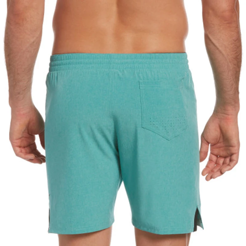 Nike Swim Men’s Essential Vital 7″ Volley Short combines a versatile solid-colored design with a water repellent finish that helps to cut down drying time and they’re perforated to allow water to drain out easily. The stretch waistband, built-in mesh brief and leg vents provide impressive comfort and support. The hook and loop back pocket and internal mesh pocket keep small items secure while you’re swimming laps or playing ball on the beach. (NESSA479)
