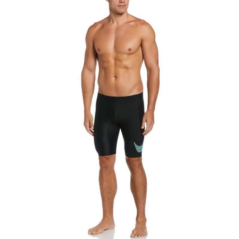 Featuring a sleek, speedy design printed with the iconic Swoosh, this Nike swim jammer will quickly become your go-to swimsuit for both race days and beach days. The men’s swim jammer is made with a soft durable tricot fabric that features added stretch for a comfortable fit. It has an interior drawcord to help keep it securely in place without disrupting the sleek look. A padded lining at the front adds comfort and modesty. (NESSC588)