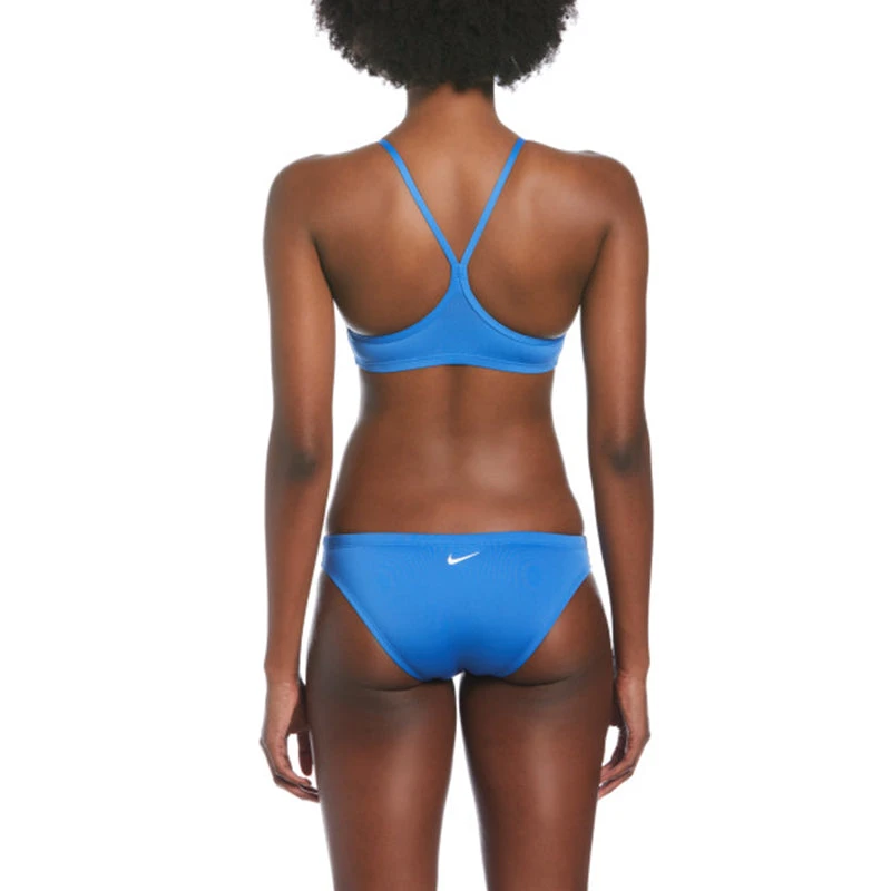 This Women’s Nike Swim Essential Racerback Bikini Set provides medium support in a sleek and sporty design. The flattering racerback swim top and low-rise swim bottom offer minimal coverage for total freedom of motion. Removable soft cups allow for adjustable coverage and comfort, and stabilizer pockets keep them securely in place. The swim bottom has an interior drawcord for easy adjustability. It’s fully lined for an improved fit and feel. (NESSA211)