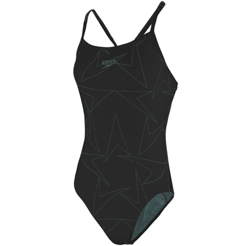 Celebrating the iconic Speedo branding swimsuit in timeless black features a macro-twist on our new Boomstar print in grey. The thin-strap design of the Turnback allows unrestricted shoulder movement, and the high-cut leg gives maximum flexibility during your swim. Our Endurance10 fabric contains Creora HighClo, ensuring your suit will fit like new for longer. It’s soft and stretch so you can enjoy your swim without feeling restricted.