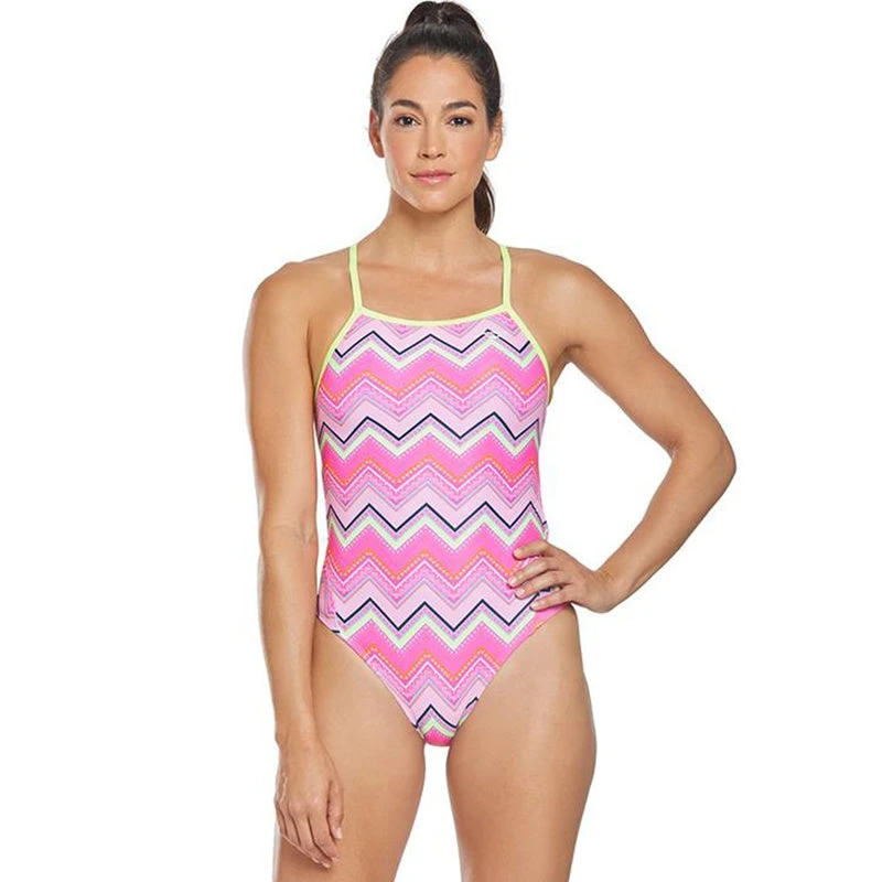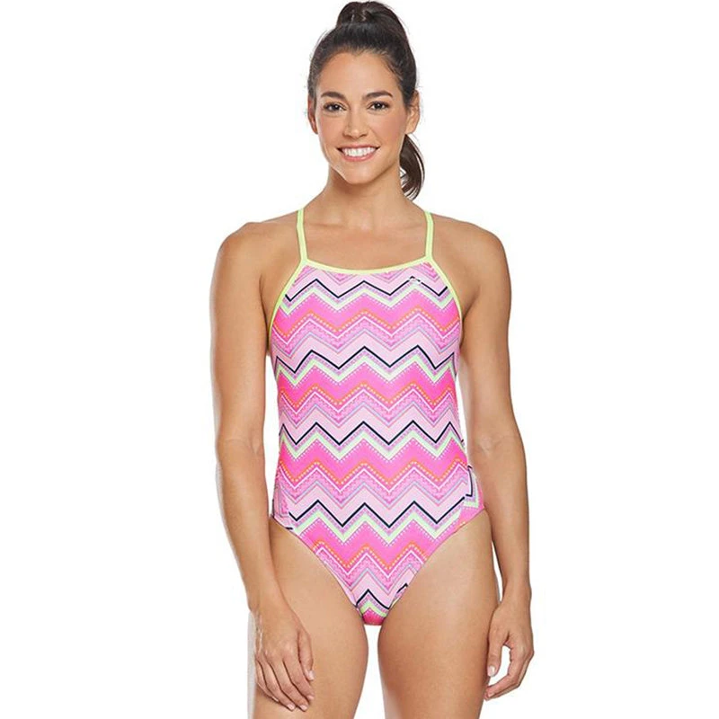The Women’s Conga Funnies Wingback Swimsuit utilizes a sleek poly/spandex fabrication to provide performance in and out of the water.
