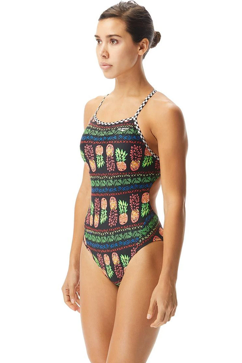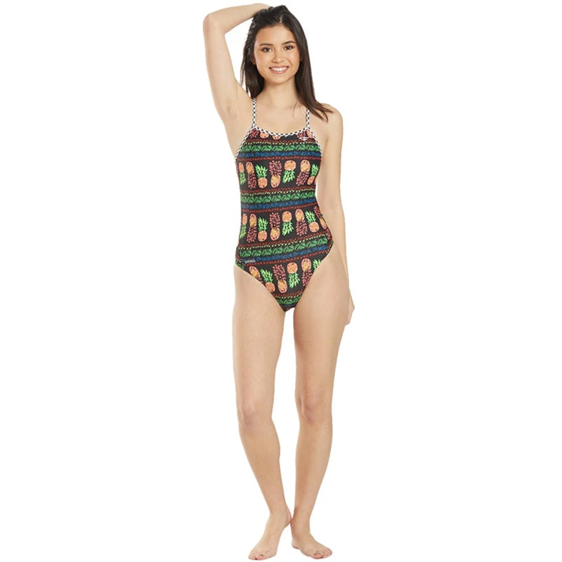 The Women’s Tropic Party Non Foil Funnies Wingback Swimsuit utilizes a sleek Poly/Spandex fabrication to provide performance in and out of the water.